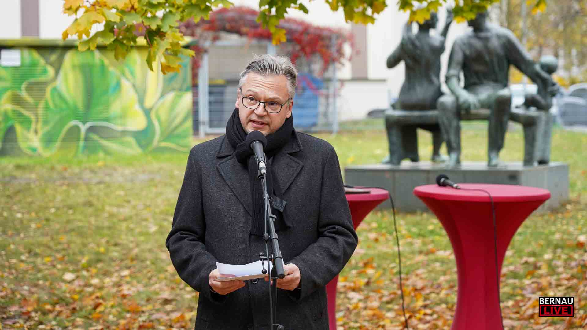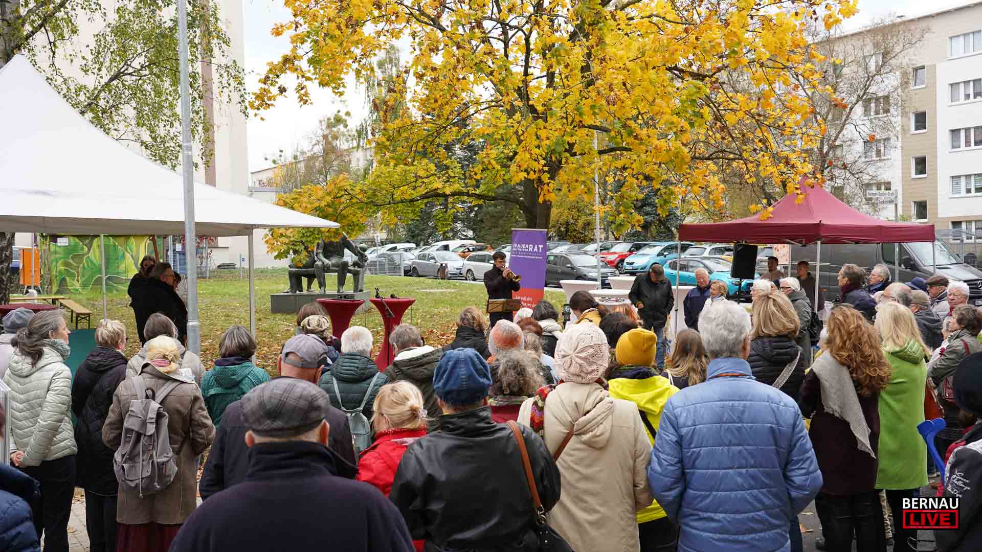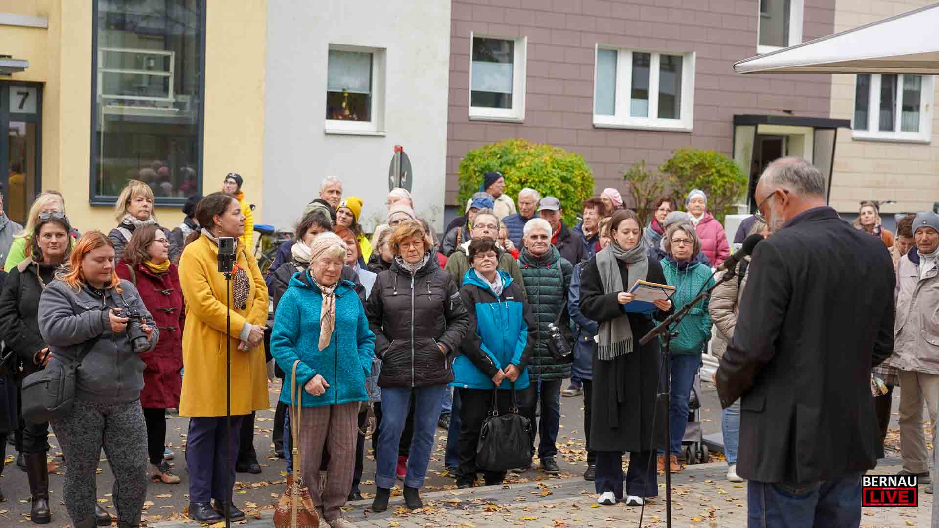 Die Einweihungsfeier stieß trotz des herbstlich-rauen Wetters auf große Resonanz: Geschätzt 100 Gäste fanden den Weg zur Herrmann-Duncker-Straße/Ecke Gorkistraße, um der Ehrung beizuwohnen. Unter den Anwesenden waren Vertreter aus Politik und Sozialwesen, darunter Landrat Daniel Kurth, Bernaus stellvertretender Bürgermeister Clemens Pfütz und Jeannette Pella, Geschäftsführerin der Hoffnungstaler Stiftung Lobetal. Auch Elio Gäbelein vom Frauenpolitischen Rat, Projektleitung der FrauenOrte Land Brandenburg, nahm an den Feierlichkeiten teil. Für eine stimmungsvolle Atmosphäre sorgte die musikalische Umrahmung durch Saxofonist Steven Tailor.