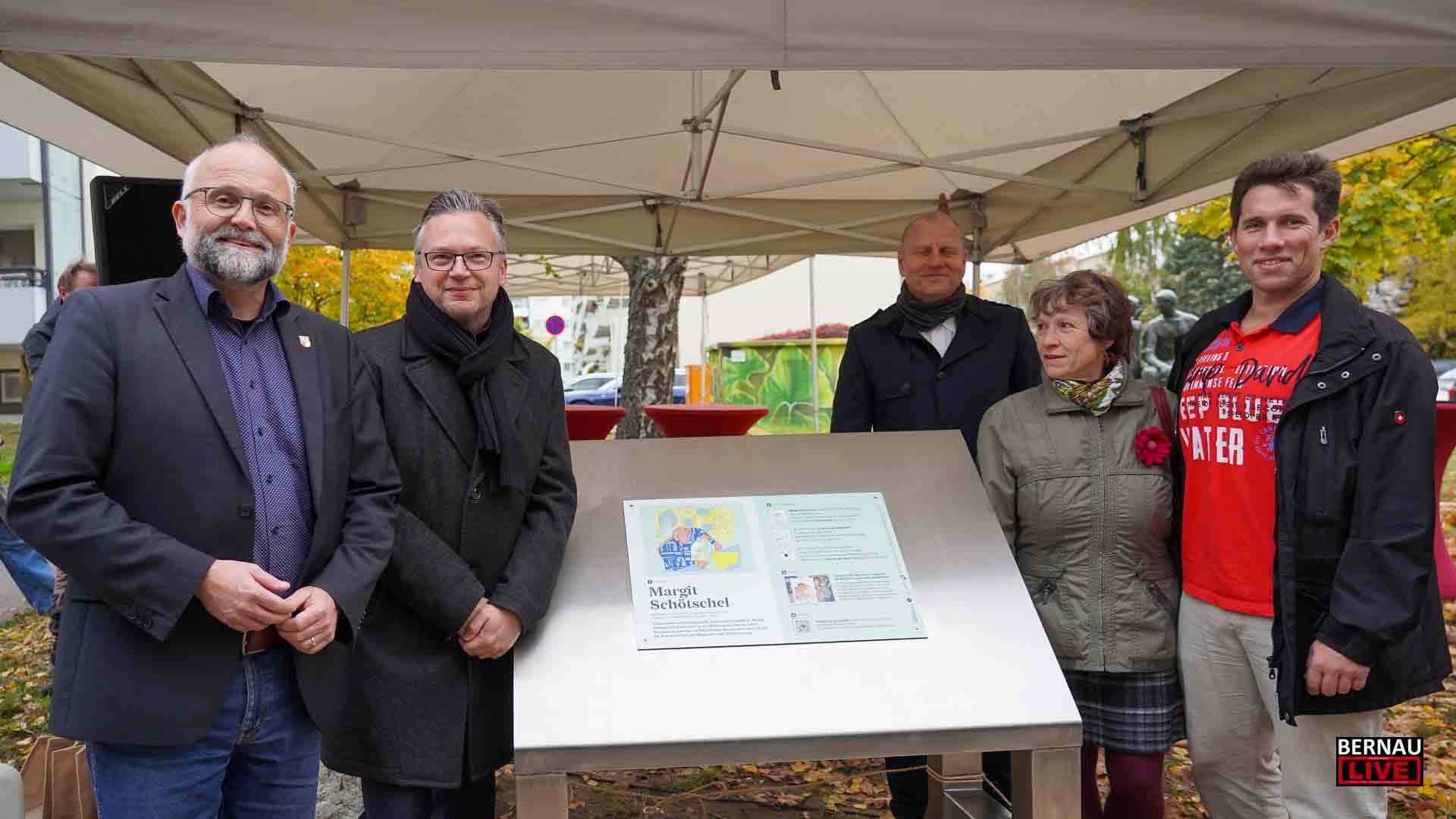 Die Tafel würdigt das herausragende Lebenswerk der Bildhauerin und Pionierin der Kreativarbeit mit Menschen mit Behinderung, Margit Schötschel (1933–2017). Staatssekretär Patrick Wahl eröffnete die Einweihung mit einer Ansprache und hob die Bedeutung Schötschels für die inklusive Erinnerungskultur hervor.