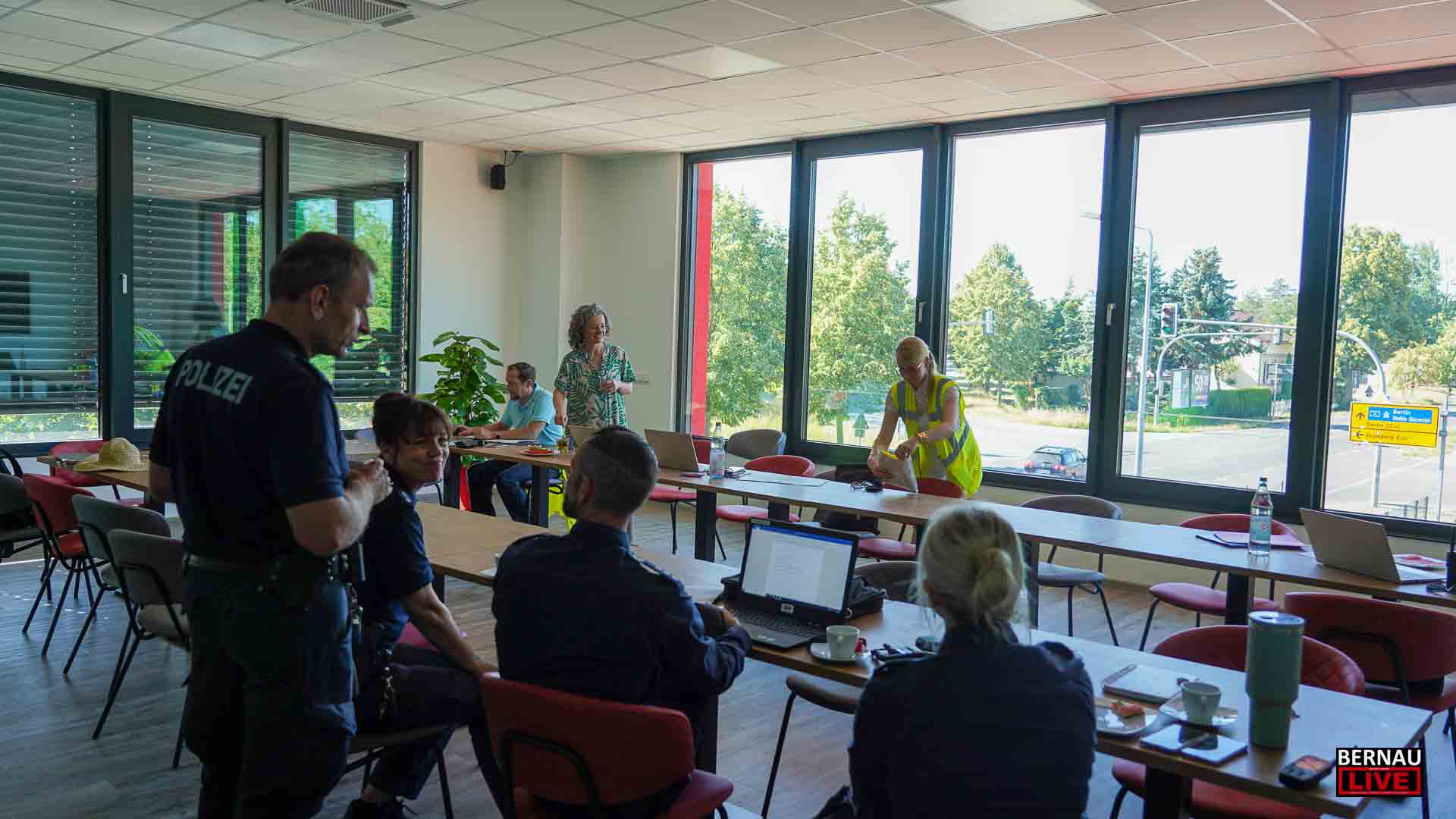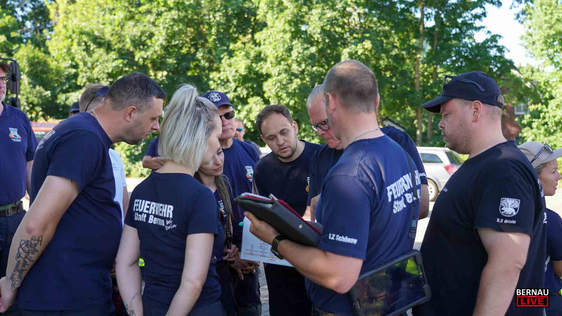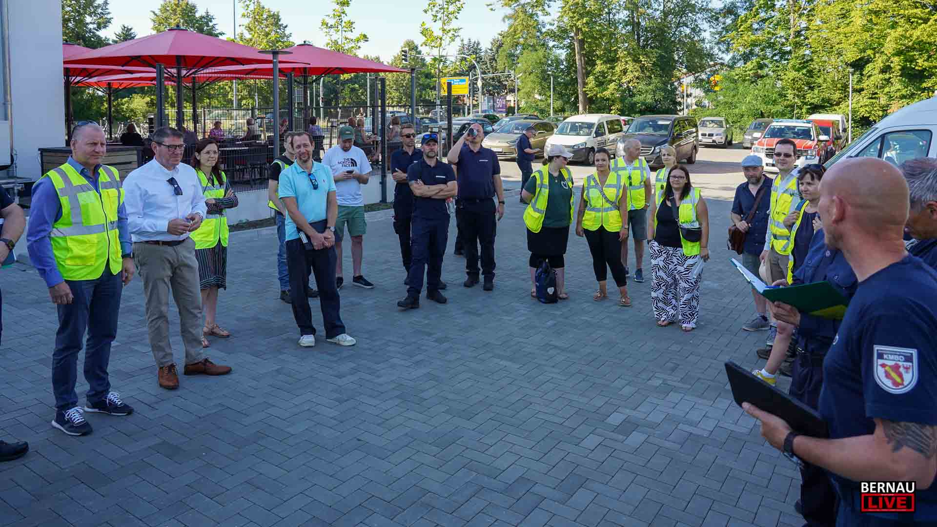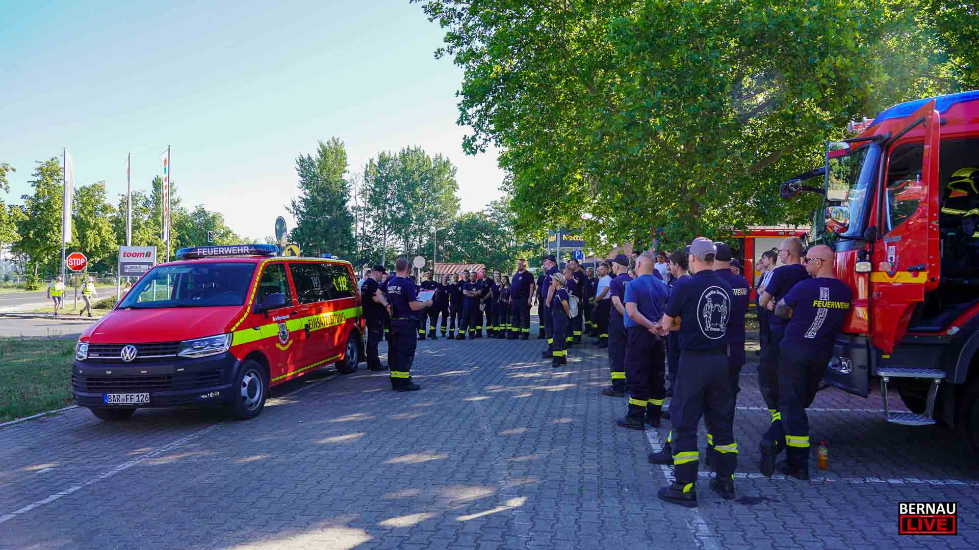 Bereits seit dem frühen Morgen waren zahlreiche Menschen damit beschäftigt, den Sperrkreis einzurichten, ein Lagezentrum aufzubauen und sich um die Evakuierung von Anwohnerinnen und Anwohnern zu kümmern. Bernaus Bürgermeister André Stahl begrüßte die Einsatzkräfte u.a. von Polizei, Ordnungsamt und Feuerwehr und bedankte sich bei allen für die Einsatzbereitschaft, insbesondere auch bei den etwa 70 Einsatzkräften der Freiwilligen Feuerwehren.