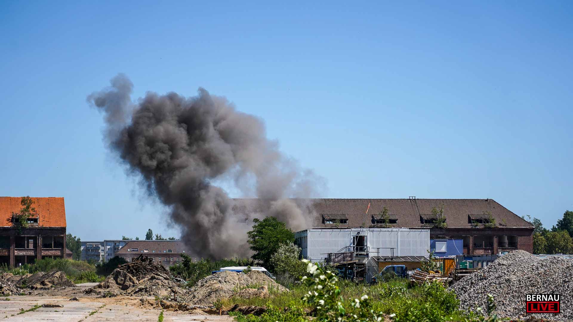 Bernau / Barnim: Vor wenigen Minuten konnte die aufgefundene Munition auf der Baustelle an der Schwanebecker Chaussee erfolgreich gesprengt werden.