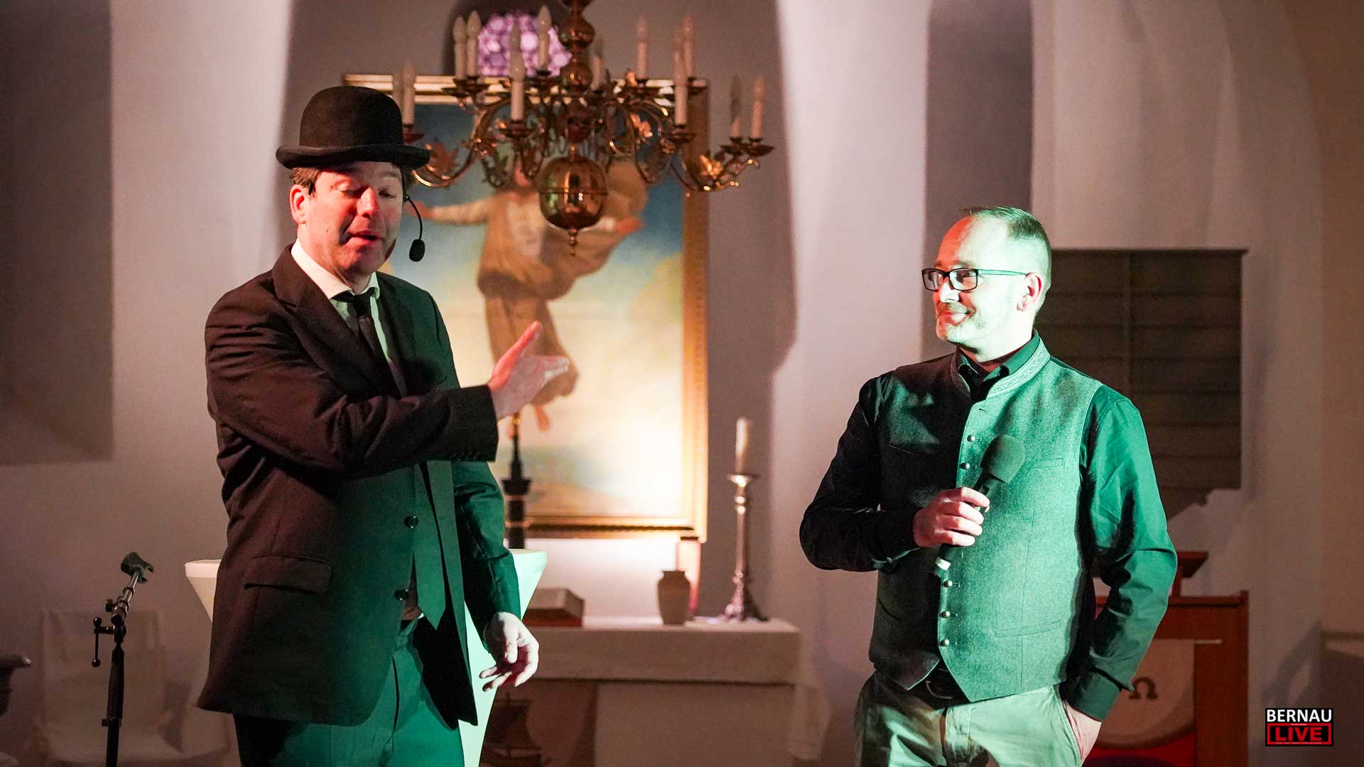 Leopold Altenburg hingegen ist ein Wiederholungstäter und begeisterte bereits im vergangenen Sommer im Rahmen der Veranstaltungsreihe „Klappstuhltheater“ zusammen mit Sascha Gluth das Bernauer Publikum auf der Ladeburger Dorfaue. Nun schlug der Ururenkel des Kaisers erneut im Bernauer Ortsteil Ladeburg auf.
