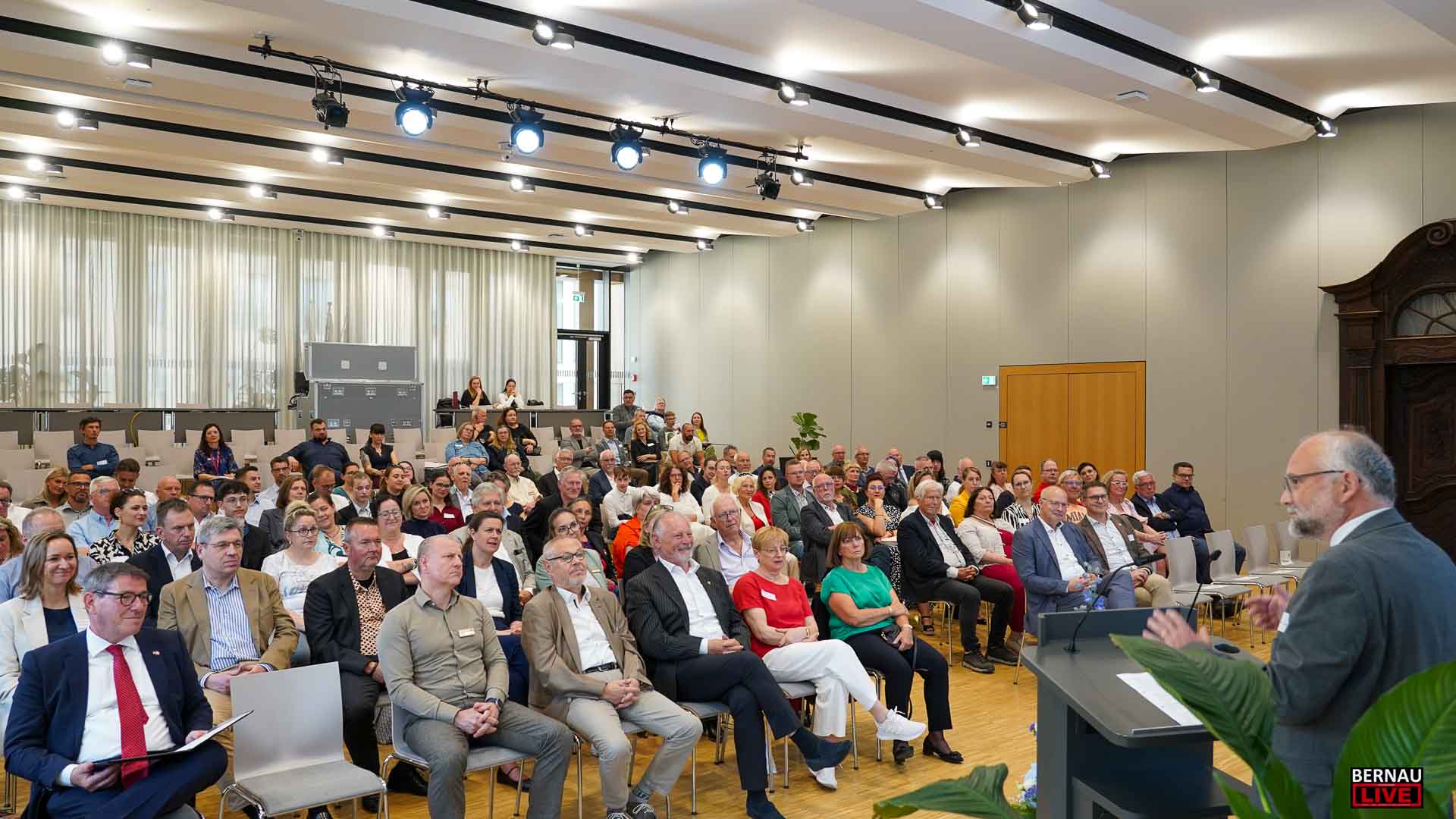 Zahlreiche Unternehmer aus verschiedenen Branchen kamen zusammen, um sich über die wirtschaftliche Situation Bernaus zu informieren. Der Bürgermeister nutzte die Gelegenheit, um in seiner Rede die aktuellen wirtschaftlichen Entwicklungen, die Zunahme der Pendler und den Bedarf an Gewerbeflächen darzulegen.