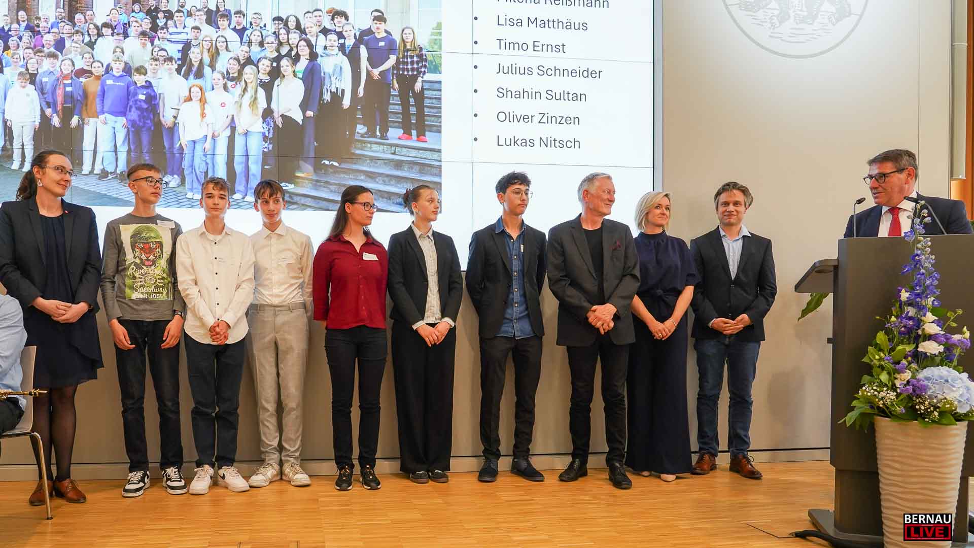 Daniel Kurth sprach den ansässigen Unternehmen seinen Dank aus. Er betonte, wie entscheidend ihr Handeln für die Region sei, da sie Arbeitsplätze sichern, kommunale Kassen durch Steuern stärken und sich aktiv im Ehrenamt engagieren. Einen besonderen Lichtblick sah Kurth in der Ehrung von Schülerinnen und Schülern der beiden Bernauer Gymnasien. „Die jungen Leute können was, sie sind viel besser als ihr Ruf“, appellierte Barnims Landrat.
