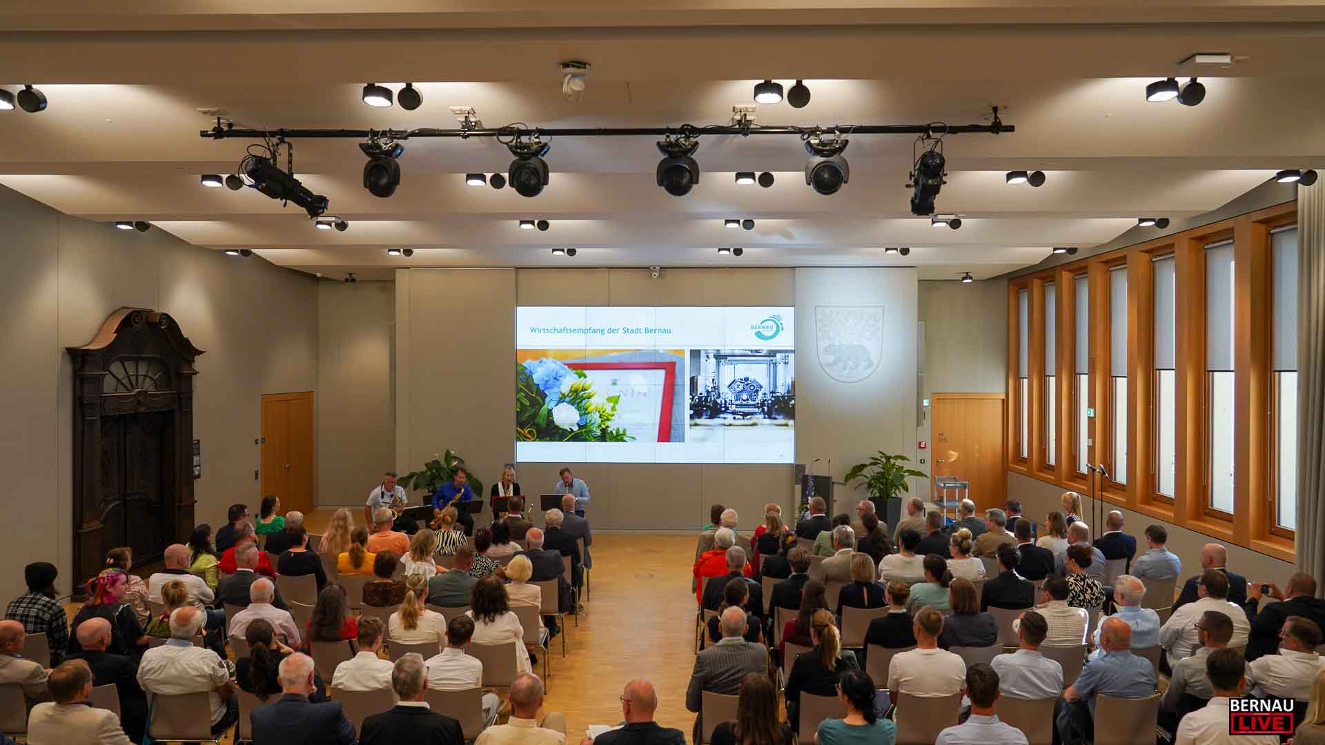 Bernau / Barnim: Einen Tag vor dem Hussitenfest lud die Stadt Bernau bei Berlin am 12. Juni 2025 traditionell zum Wirtschaftsempfang in den Saal des Neuen Rathauses ein.
